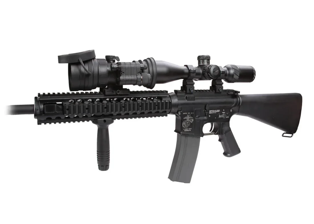 The AGM Comanche 22 Night Vision Clip-On (NVCO) system incorporates cutting-edge night vision technology to enhance mid-range nighttime shooting. Designed for maximum clarity, reliability, and versatility, the Comanche 22 offers top-tier functionality at an affordable price. It mounts directly onto a standard Weaver or Picatinny rail in front of your existing day scope, converting it into a powerful Night Vision Device without the need for re-zeroing. This NVCO is optimized for use with day scopes up to 7x magnification and includes a quick-release mount and wireless remote control for added convenience. With its superior target acquisition and enhanced aiming capabilities, the Comanche 22 proves invaluable for even the most demanding missions.