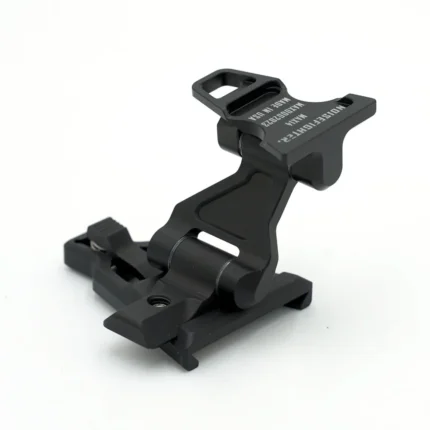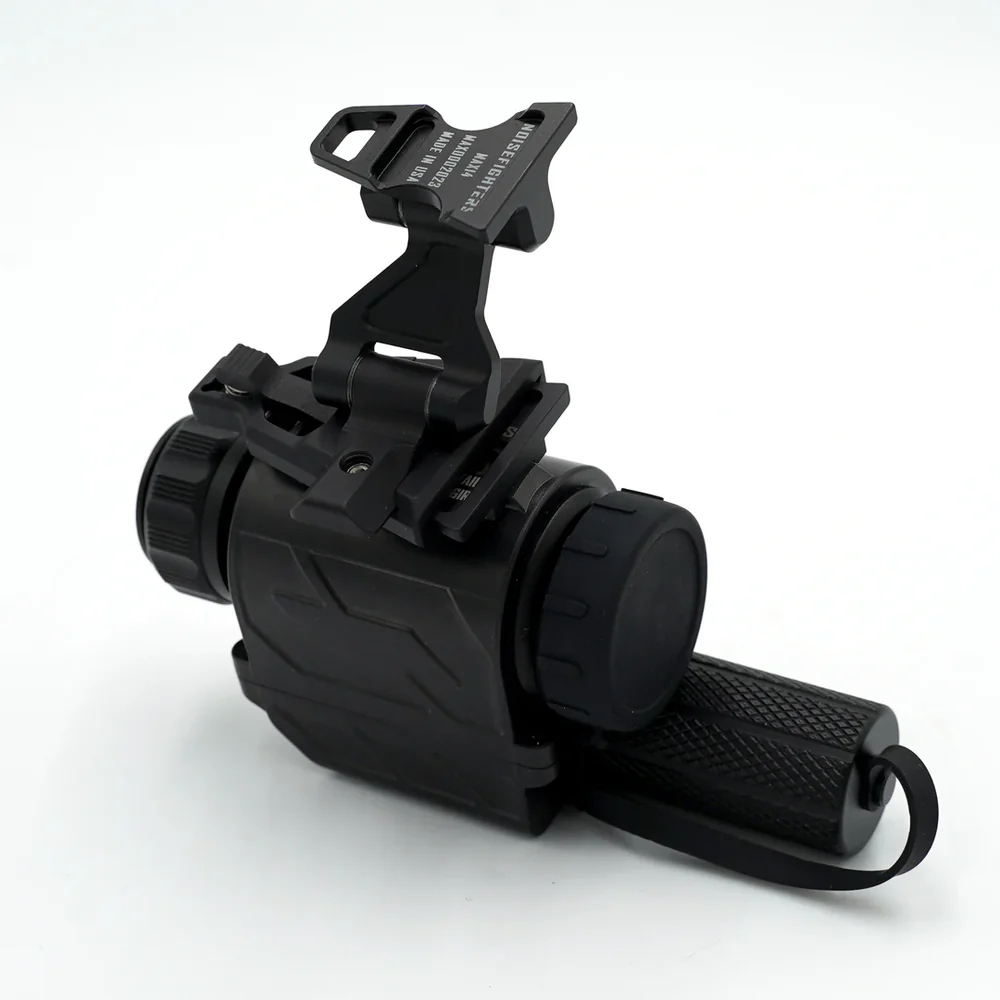 DMAX14™ is a rigid, incredibly lightweight, and all-metal night vision J-arm for dovetail-equipped thermal monoculars such as the Infiray RH25 and Trijicon SkeetIR. It includes a rotating knuckle which provides a tight stow against the helmet and also allows the monocular to be temporarily swung away from the eye. At 1.4 oz total, it weighs less than a polymer milspec J-Arm, yet its structure is composed entirely of the highest-performing 7075-T6 aluminum alloy for industry-leading durability.